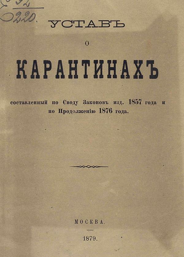 Устав о карантинах, составленный по Своду законов изд. 1857 года и по Продолжению 1876 года