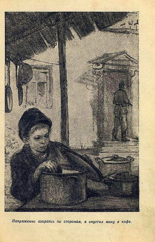 Илл. 1 (из 1). Напряженно озираясь по сторонам, я опустил мину в кофе. Стр. 81