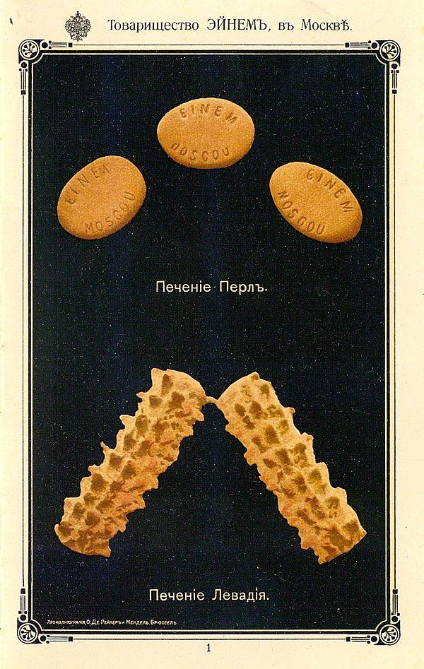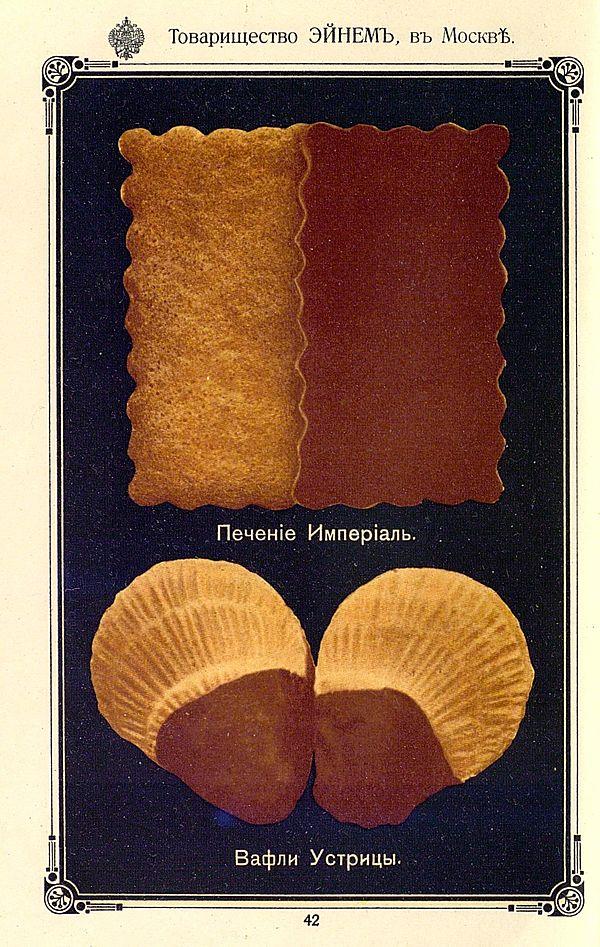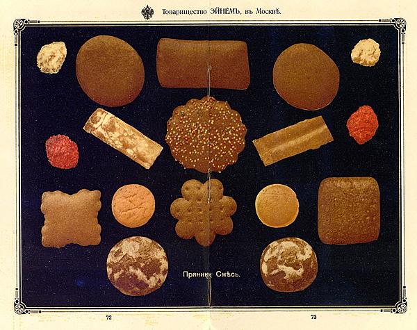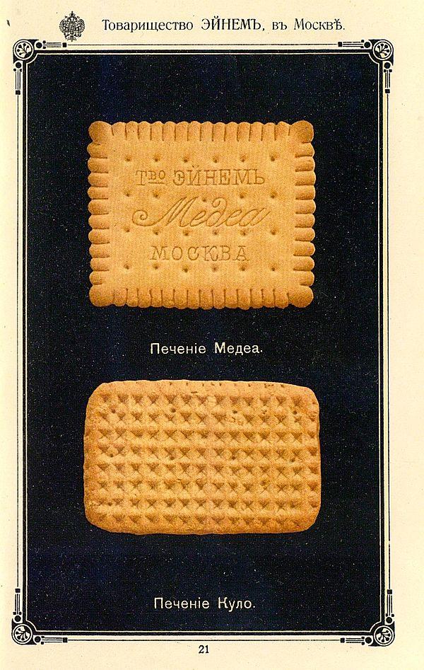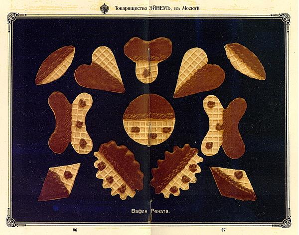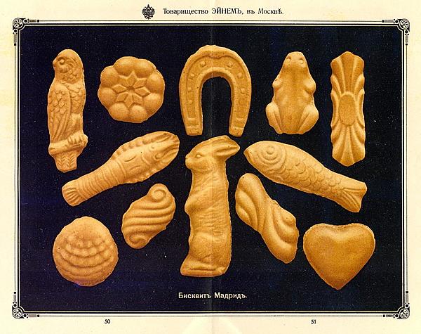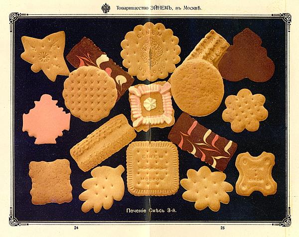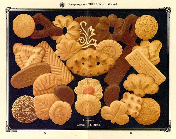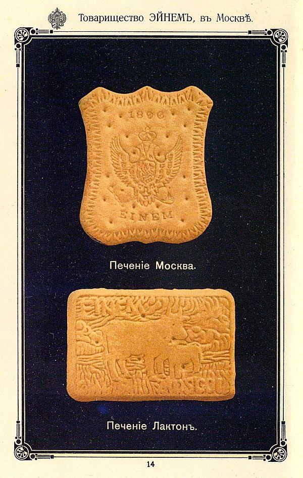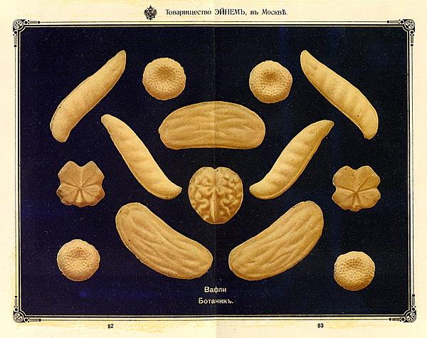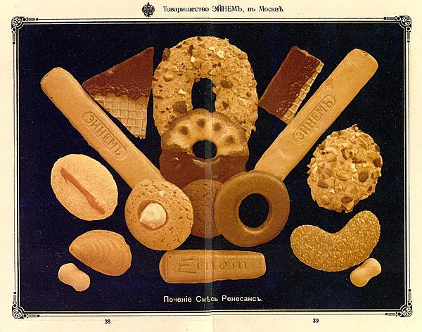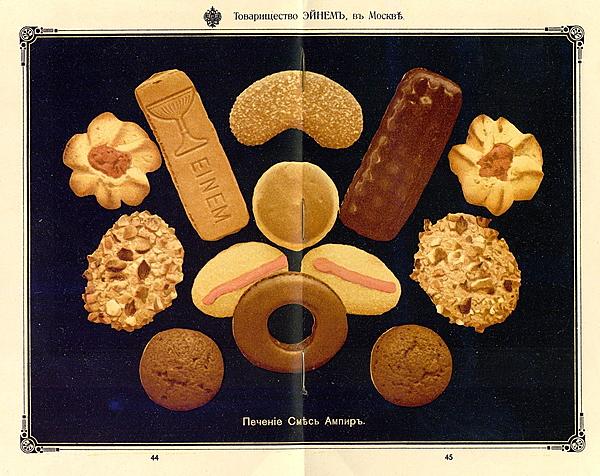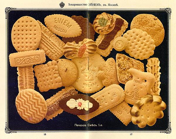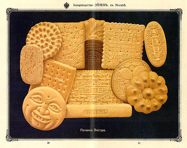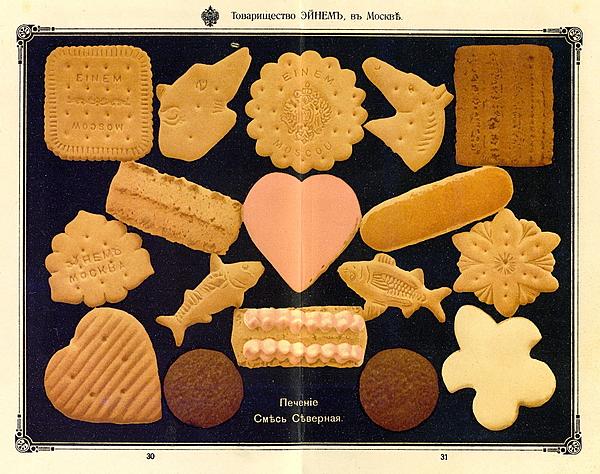 Продолжаем серию публикаций, посвященных продуктам питания и их идиллическому отражению в книгах. В прошлый раз мы подробно разобрали советский альбом «Колбасы и мясокопчености», а сегодня обратимся к каталогу печенья, пряников и вафель, выпускаемых Товариществом «Эйнем» в Москве.