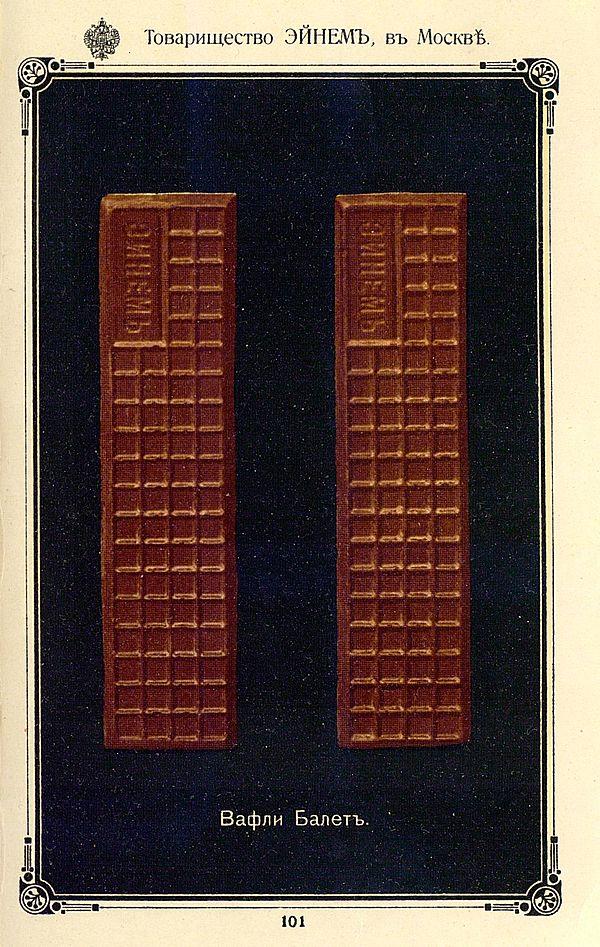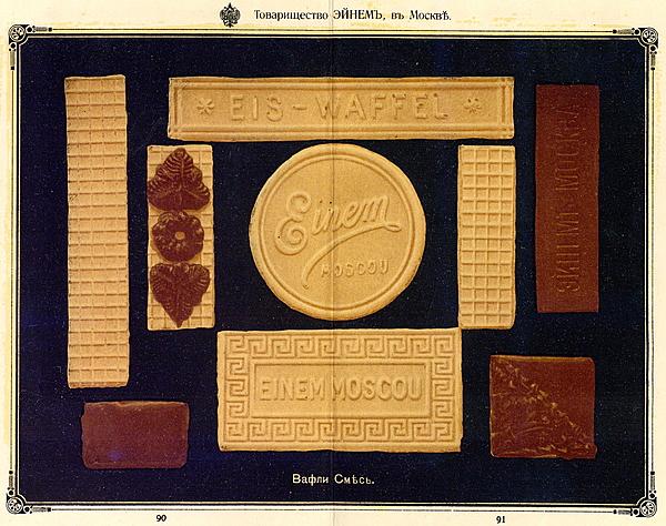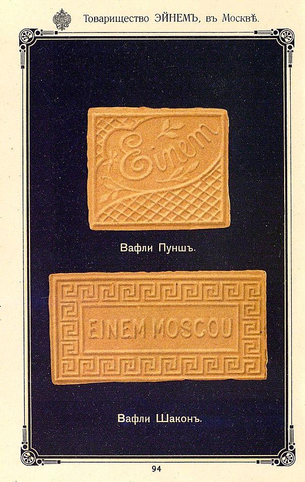 Рекламный буклет изделий фабрики был выпущен в 1896 году, на пике рассвета Товарищества, в том же году продукция «Эйнем» была награждена золотой медалью на Всероссийской промышленно-художественной выставке.