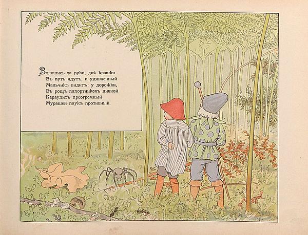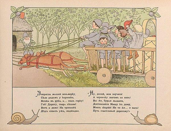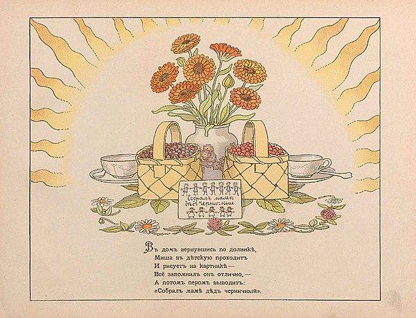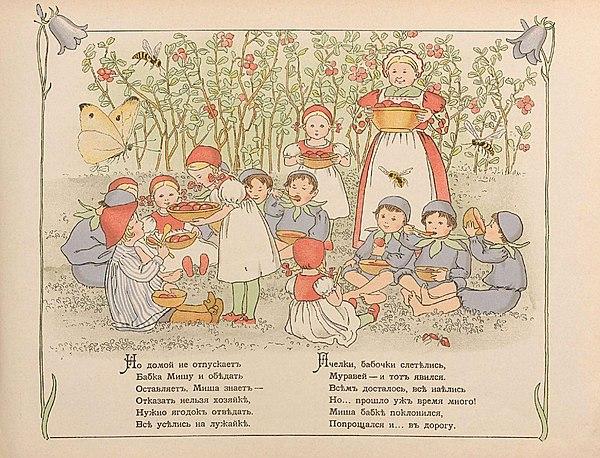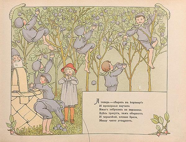Книга шведской писательницы и художницы Эльзы Бесков, «Peter in Blueberry Land» вышла в 1901 году. Русский перевод сделал Дядя Якъ в 1903 году. В переводе мы можем видеть характерный юмор, который отразится в последующих книгах переводчика, например, в «Морщинках смеха» (1912).