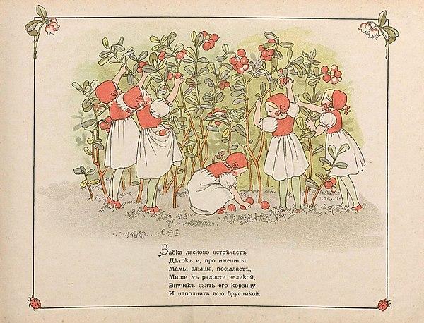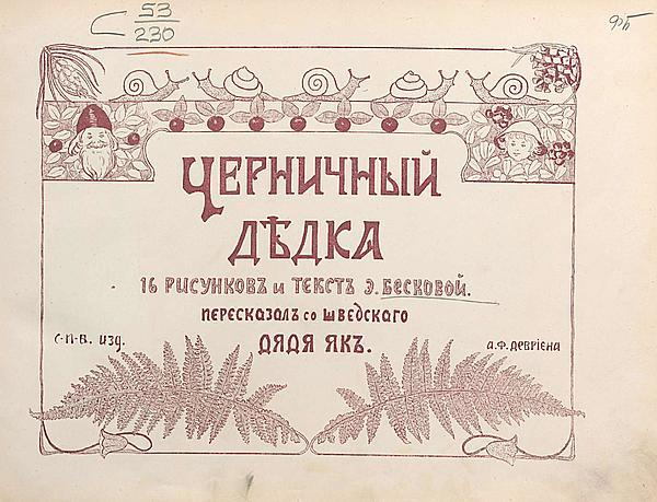 Книга шведской писательницы и иллюстратора — Эльзы Бесков. «Черничный дедка» — был издан в России в 1903 году. Благодаря своему актуальному для русской инициатической культуры сюжету, книга имела большой успех как до, так и после революции.